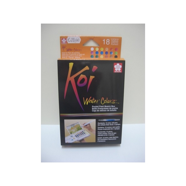 Favolosi set acquerelli Koi Sakura di ottima qualita'. Si tratta di colori altamente pigmentati presenti in questo set nel formato di mezzi godet . La confezione, oltre ai colori, contiene anche un comodo e pratico pennello con serbatoio da 9 ml. e una tavolozza con cui e' possibile miscelare i colori. Confezioni disponibili da 18 mezzi godet, da 30 mezzi godet e da 48 mezzi godet.