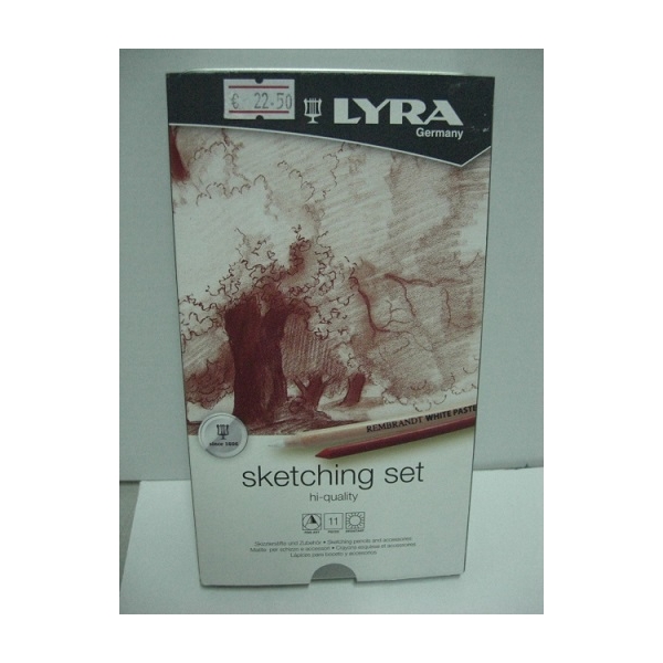 ASSORTIMENTO DI MATITE E STICK PER SCHIZZO DI QUALITA' SUPERIORE CON MINA EXTRA. IL KIT CONTIENE N 1 MATITA TITAN 2B, N 1 MAT. CARBON SOFT, N 1 MAT. GESSO NERO, N 1 MAT. GESSO BIANCO SECCA MEDIUM, N 1 MAT. SEPIA CHIARO. N 1 MAT. SANGUIGNA GRASSA, N 1 PASTELLO QUADRO OCRA 7x7 mm, N 1 STICK CARBONCINO 7x14mm 6B, N 1 MINA SANGUIGNA SECCA, N 1 GOMMA PANE, N 1 TEMPERAMATITE.