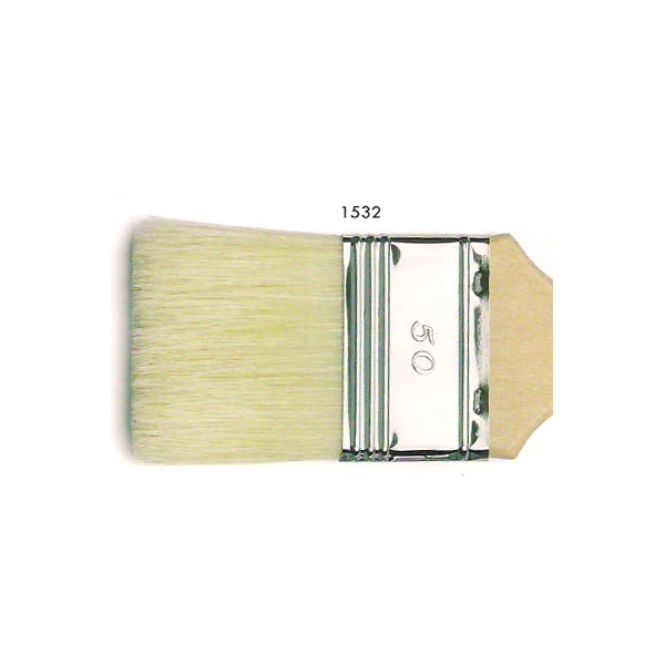 Pennellessa pelo lungo, setola bianca. Manico di legno grezzo. Numerazione disponibile da 20 a 60